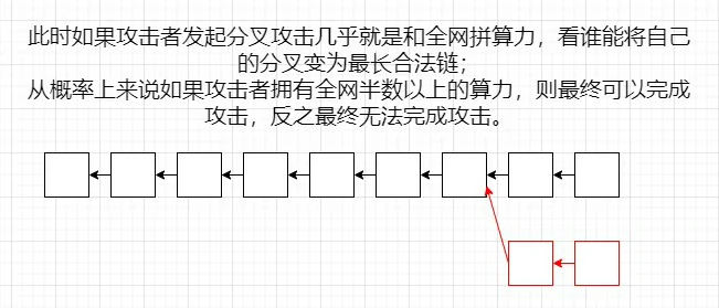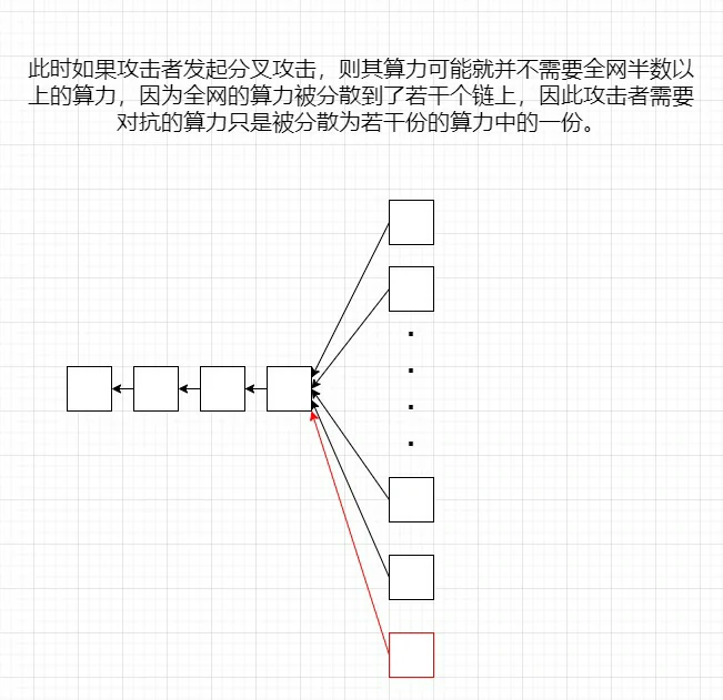 - 这样全网的算力就被分散到十分多的分叉上了。