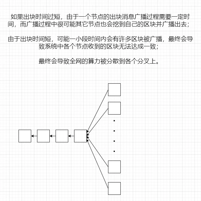 - 在出块慢的时候10分钟的时间基本足够将出块信息广播给网络中的绝大多数节点,而在十分钟内基本不会出现大量的区块被广播。而如果出块速度加快,则在某个区块的广播过程中别的节点也很容易算出自己的区块并广播,这就会导致网络中的节点收到的区块不是基本一致的,而是多种多样的。