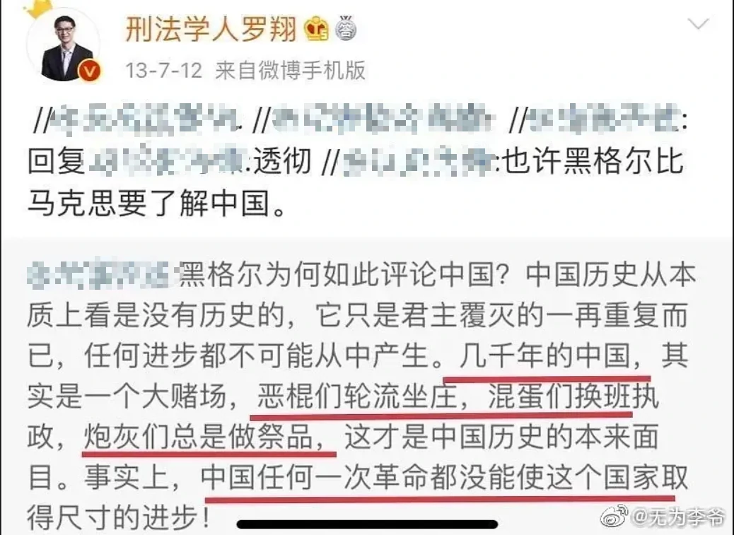 上面的讨论即支持又质疑了黑格尔的观点,但是由于不知道罗翔老师的观点,所以无从评论。