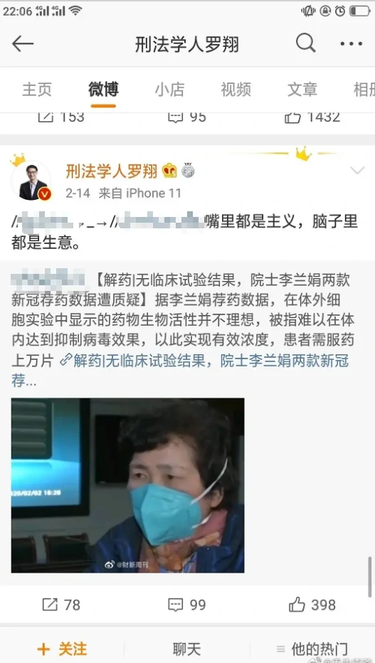 本来单拿出这张图来是不会引起任何联想的,但是那段时间钟南山院士被授予的“共和国勋章”。于是有人就将二者联系起来,认为这是罗翔质疑钟南山院士的荣誉。
