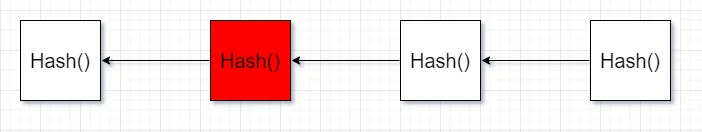 因此后续的节点都使用的是哈希指针,所以必然会导致右边的两个区块的哈希指针发生改变。