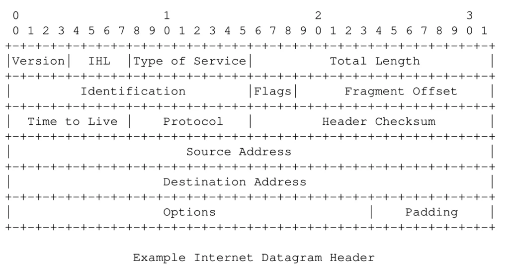 上图就是 IP 报文头的结构,第二行的左边就是需要被检测的字段,下面是该字段的说明。