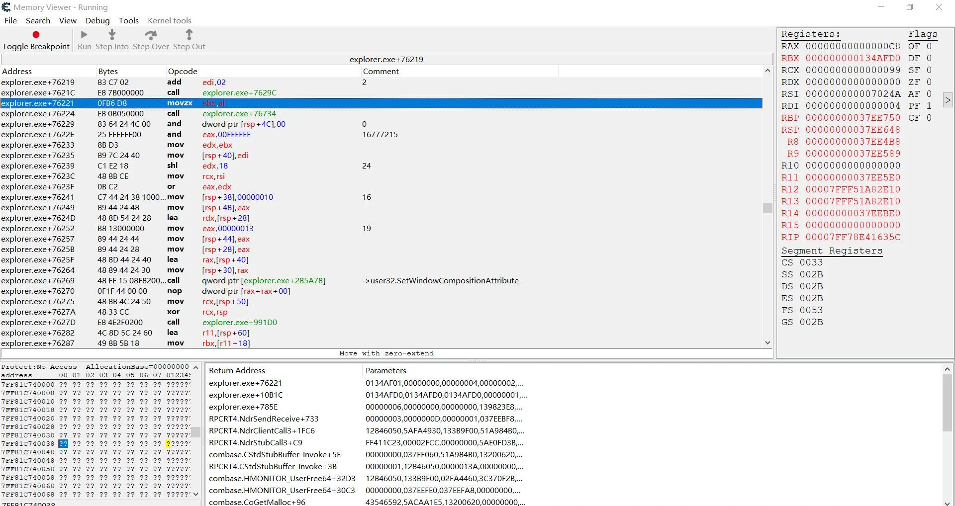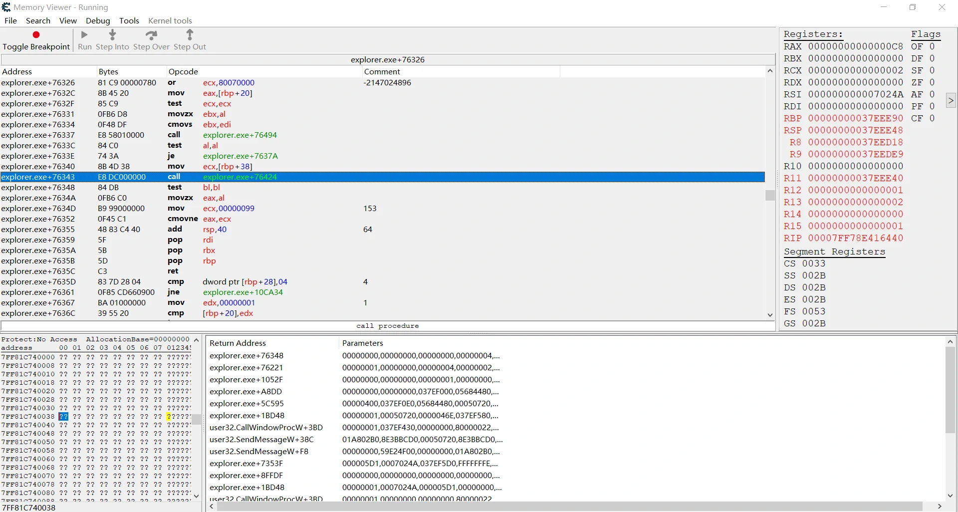 explorer.exe+7623C - 48 8B CE - mov rcx,rsi
