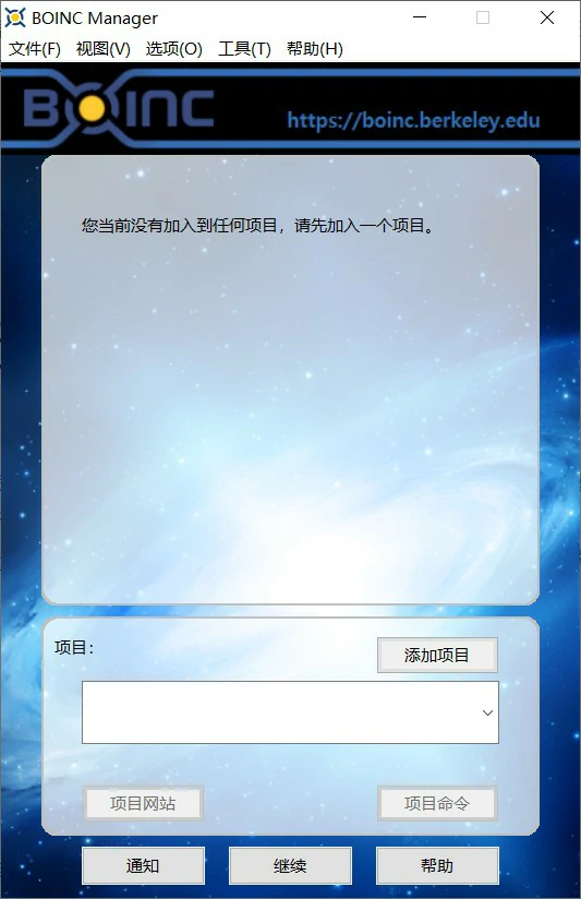 BOINC 可以分为两部分,一部分是客户端,用于执行具体的计算。另一部分为管理端,可以管理多个客户端,比如指定具体的科研项目,设置 CPU 使用率上限等。
